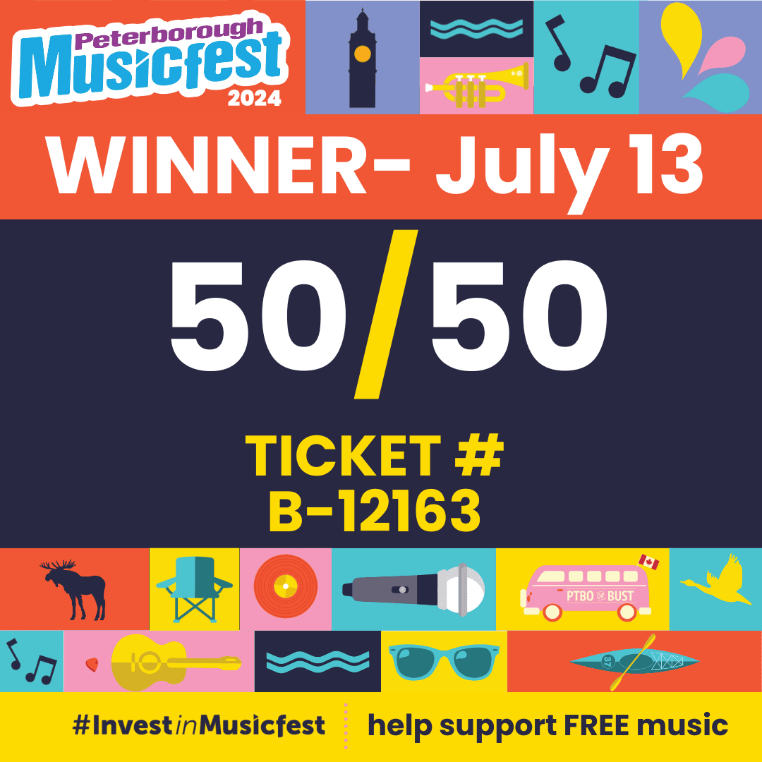 Please check your tickets and be in touch if you have the winning ticket. If you are our lucky winner, please contact our offices at 705-755-1111 or via email at info@ptbomusicfest.ca.