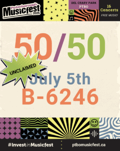 Please check your tickets and be in touch if you have the winning ticket. If you are our lucky winner, please contact our offices at 705-755-1111 or via email at info@ptbomusicfest.ca.